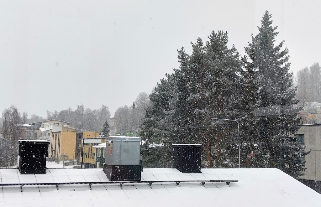 Otsikkoni kirkkaita päiviä on aivan väärä, sillä aurinkoa ei ole näkynyt. Huvitti eilen katsoessani television sääennustetta, kun Pekka Pouta ilmoitti viikonlopuksi lupaamansa lumimyräkän olevan peruttu. Hyvä niin.