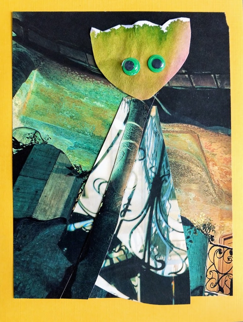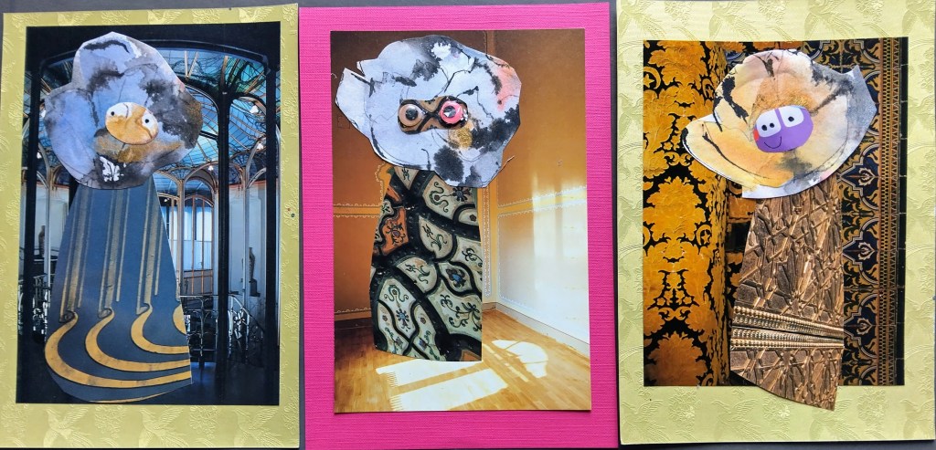 — Taitelija on saksalainen ja hänen kollaasinsa ovat todellakin hulvattomia. Silloin kun päivät tuntuvat sameilta, ei tarvitse muuta kuin eläytyä mielikuvitusmaailmaan.